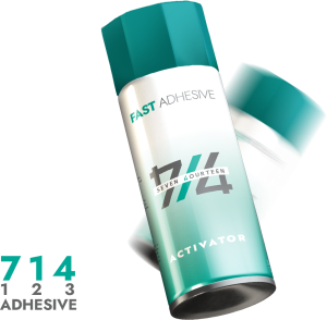 چسب ۷۱۴ یک چسب دو جزئی اقتصادی است که از ترکیب مایع سیانوآکریلات شفاف با اسپری شتابدهنده تشکیل شده و برای چسباندن سریع قطعات مختلف در صنایع چوب، فلز، سرامیک و شیشه طراحی شده است.